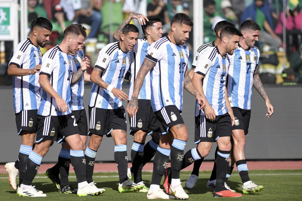 Argentina forma con Emiliano Martínez; Nahuel Molina, Cristian Romero, Nicolás Otamendi y Nicolás Tagliafico; Rodrigo De Paul, Enzo Fernández y Alexis Mac Allister; Ángel Di María, Julián Álvarez y Nicolás González.
