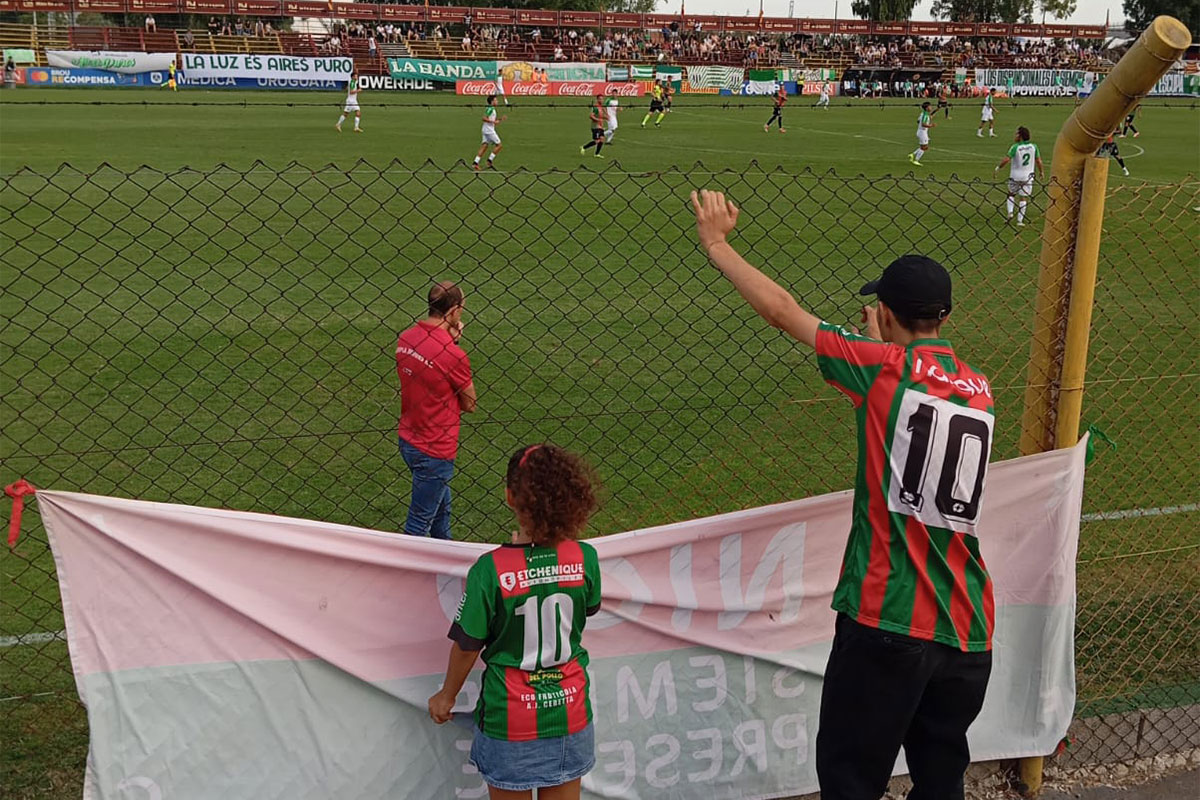 “Bien Buffa, bien Buffa”, gritan un par de hinchas ante un jugador que jugó finales de Copa Libertadores, fue suplente en la selección y hoy transpira en un estadio que supone un contrapeso romántico al fútbol mega profesional que llega por imágenes desde Europa: tribunas y alambrados bajos, sin asientos para plateas y con un container como cabina de prensa. “No, Buffa, andá para adelante, parece la selección esto”, se queja otro simpatizante, en referencia a la falta de verticalidad de la Celeste de Marcelo Bielsa.