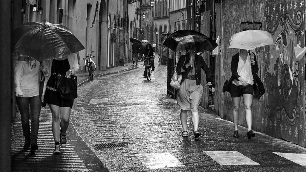 Parece verano, pero en algún callejón de la ciudad la lluvia sorprende a un grupo de mujeres. En otro rincón, con el cielo despejado, dos señoras caminan juntas de la mano. Sobre la ventana de un edificio viejo y derruido, una joven pone la ropa a secar. Las manos agrietadas de una abuela desenredan un hilo blanco. Detrás de la lente siempre está Marisa Bonzón para captar todas estas escenas cotidianas.