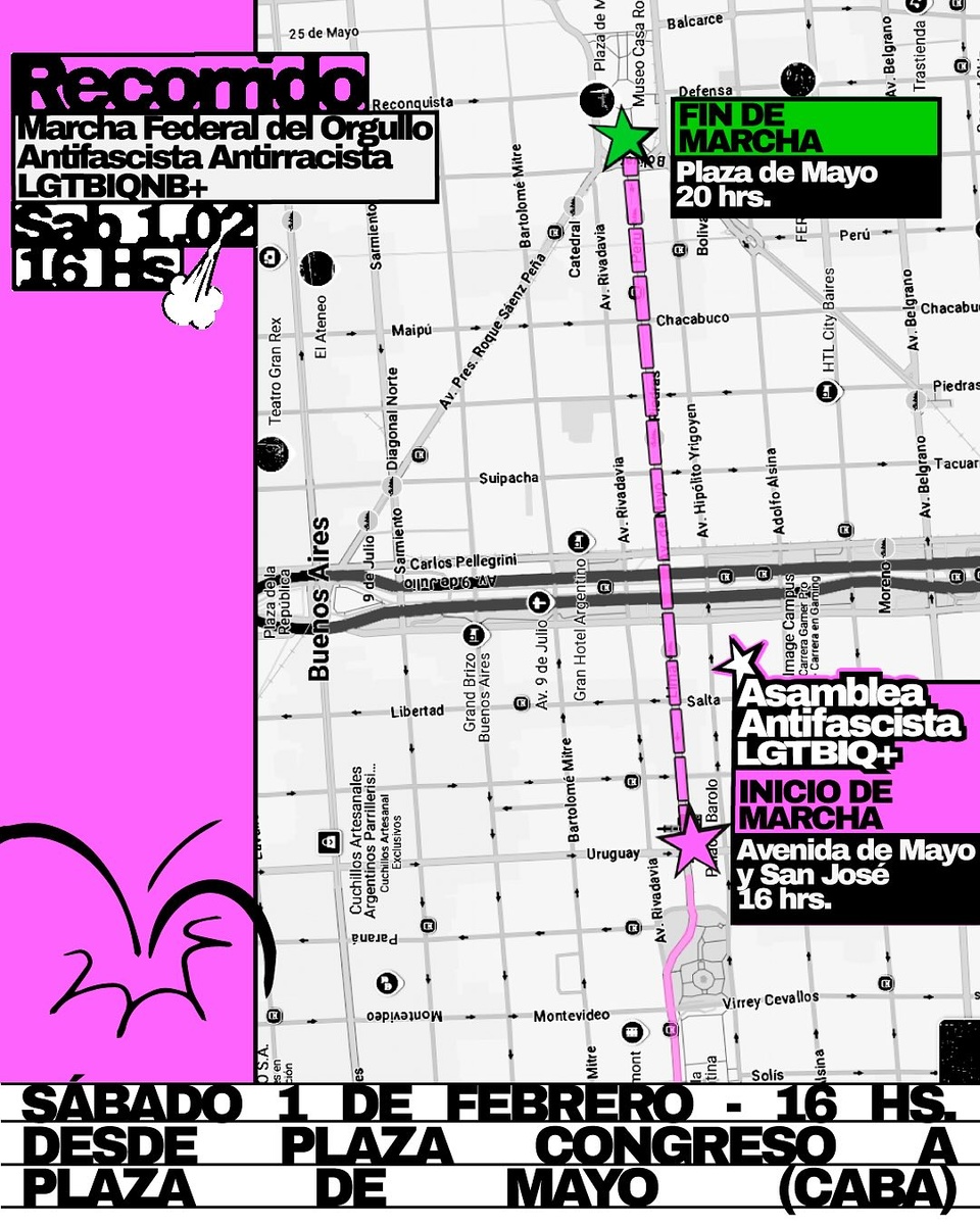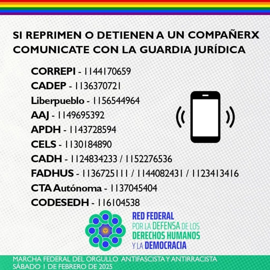 La cabecera de la marcha arranca en Avenida de Mayo y San José y finaliza en Plaza de Mayo. Desde la Red Federal por la defensa de los Derechos Humanos y la Democracia publicó un listado de teléfonos para tener presente.