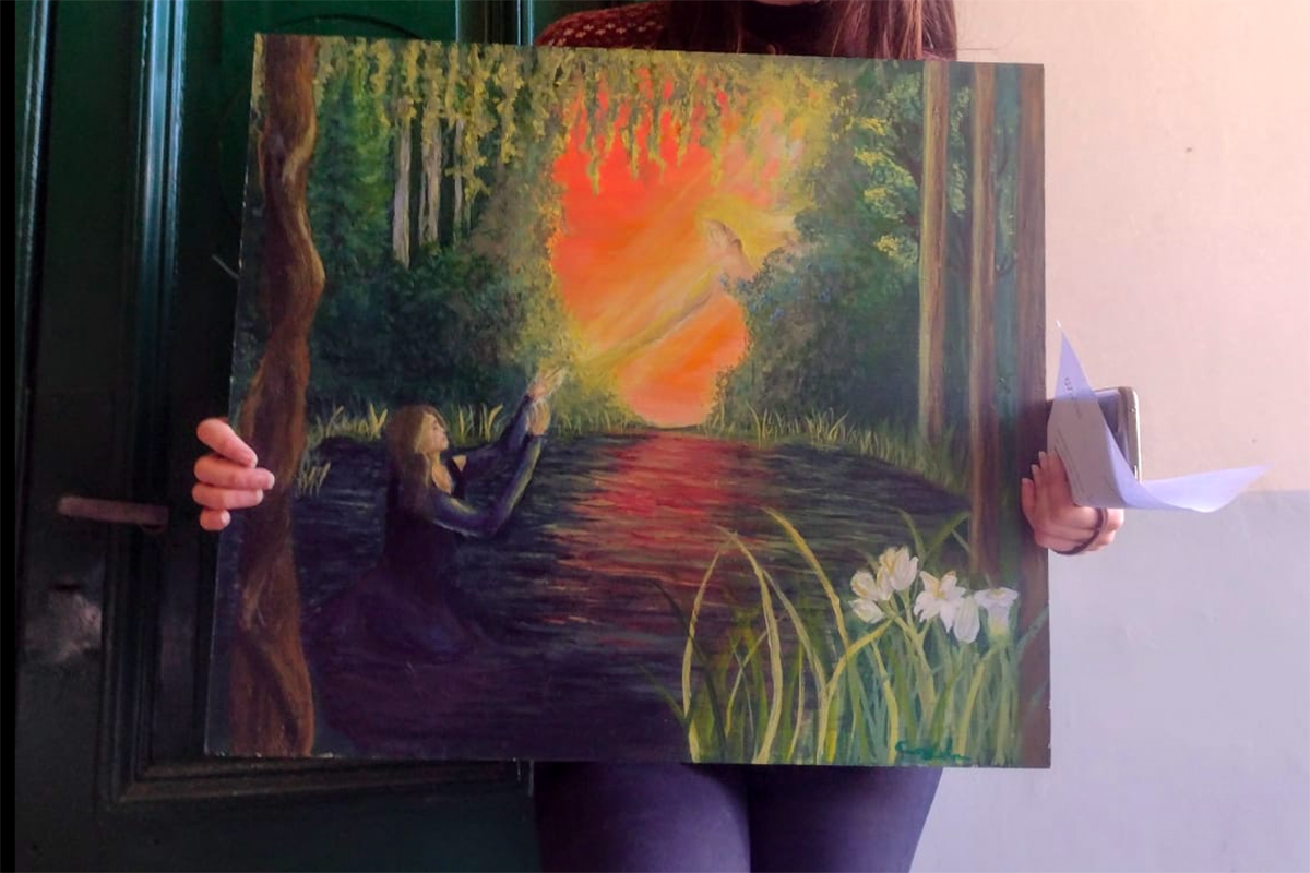 En los meses posteriores a la muerte de su hermana empezó a pintar un cuadro, que terminó presentando en los Juegos Bonaerenses. Eran dos mujeres que parecían estar saludándose, o despidiéndose, rozando sus dedos, una desde el agua, más oscura, otra más cerca del cielo. Lo llamó «Cita con los Ángeles» y en los justificativos habló de un «sentimiento de impotencia y a la vez de paz» y de «esa sensación de estar en un sueño».