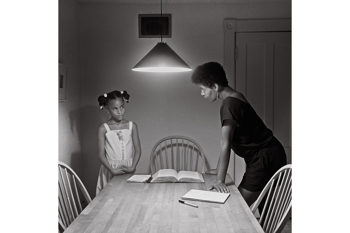 Weems se define como una “creadora de imágenes”. Mesa de la cocina es una serie en la que trabajó hace 30 años: “Empecé a trabajar en 1989 y terminé en 1990, me llevó su tiempo. Lo considero un trabajo fundamental, fue el fruto de muchísimos tipos de paradas y arranques, y de muchas pruebas y errores; mi lucha como joven artista para descubrir los matices de mi propia voz, mi propio estilo fotográfico, mi propia forma de expresarme. Todavía me resulta extraordinario y todavía estoy completamente sorprendida por ello, por cómo sigue siendo tan absolutamente contemporáneo. Es muy difícil discernir cuándo se hizo el trabajo. Podría haberse hecho hace 30 años o podría haberse hecho hace 30 días. El sentido del tiempo ha quedado desterrado del trabajo.”