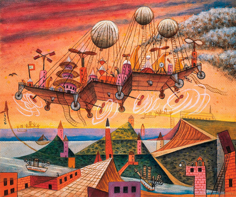 12. Otro de sus cuadros famosos, de 1936, que planteaba como solución al crecimiento demográfico, muestra una ciudad que flota gracias a hélices y globos aerostáticos. ¿Cómo se titula la obra que sigue?