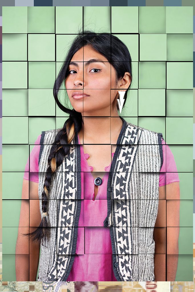 Karen Navarro afirmó: “Creo retratos intervenidos de marrones-indígenas de la urbanidad con una instalación que parte de una imagen de una tierra ancestral del norte Argentino. Al utilizar como punto de partida el cuadrado característico de la wiphala (emblema utilizado por los pueblos originarios de América del Sur como bandera) y del pixel desafío la noción de que la identidad indígena está confinada al pasado.
