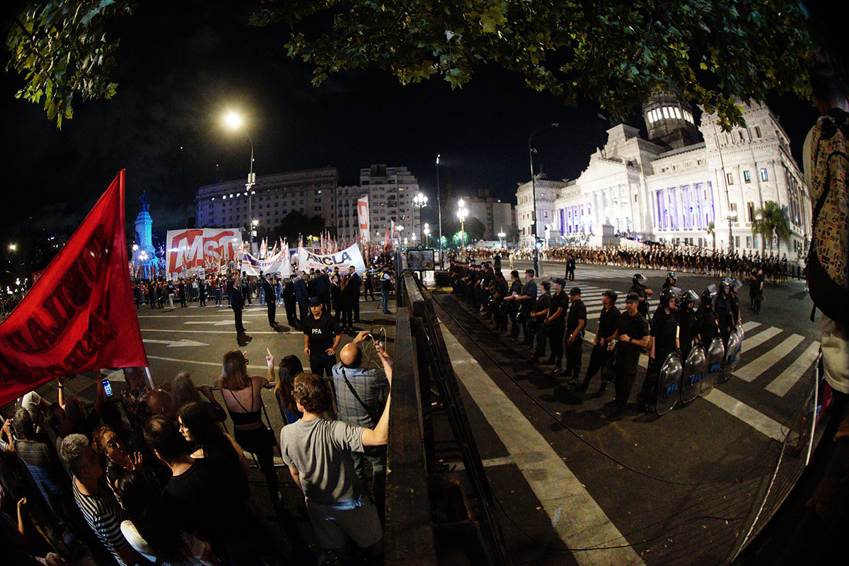 La del jueves 29 de febrero fue una noche sin estrellas. Bien a tono, el centro porteño se encontraba militarizado. Más de cuatro mil mastines humanos, con escudos y armamento de toda clase cubrían hasta el último rincón, en medio de camiones hidrantes y patrulleros. También había motociclistas policiales y agentes de civil en vehículos sin identificación. ¿Acaso acababa de estallar un golpe de Estado? La respuesta es negativa; era, simplemente, el dispositivo de seguridad en previsión al discurso que el presidente Javier Milei declamaría al día siguiente ante la Asamblea Legislativa. Pero la escena remitía a los años de plomo.
