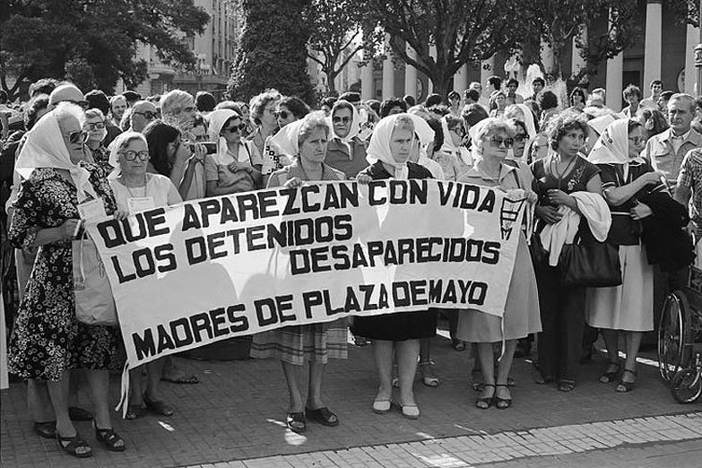 Último jueves de diciembre de 1978. Había pasado el Mundial que las ubicó en el conocimiento internacional cuando un equipo de televisión holandés cubrió por satélite la Marcha que hicieron el jueves de la inauguración de la Copa, en simultáneo con la ceremonia, en una plaza vacía.