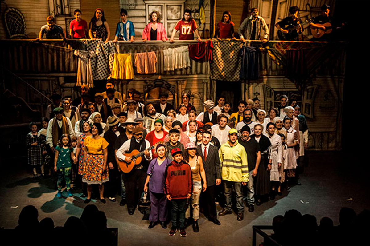 G.D.: –A diferencia de otras experiencias teatrales corrientes, el teatro comunitario trabaja el nosotros, concretamente, como una voz coral. El texto o lo que se cuenta, mayoritariamente, lo expresamos en coro, todos juntos. Por eso es tan importante la música, porque muchas cosas se dicen cantadas, que es la mejor manera de sintetizar una historia y decirla grupalmente, a la vez. No tenés que pararte a desarrollar un personaje, o hacer algo en que te sientas expuesto; uno tiene la contención de los demás. No es lo mismo actuar o cantar solo que hacerlo con 50 compañeros a tu alrededor. Todas las escenas son colectivas. Eso abre e invita a sumarse. Cuando hicimos la convocatoria para la Orquesta Atípica vino gente con panderetas, saxos, bandoneones, todo muy variado, porque decidimos no restringirnos a ningún instrumento, ni a ninguna formación en particular.