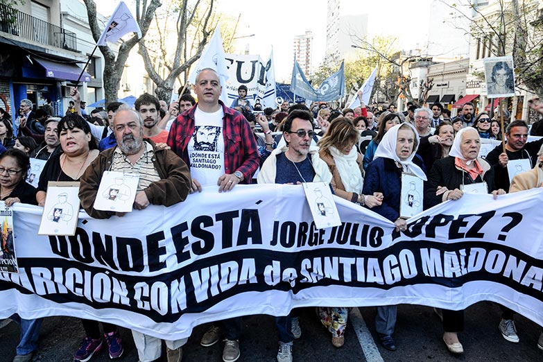 En el aniversario de la segunda desaparición del testigo en el juicio a Miguel Etchecolatz, marcharon en La Plata con el pedido de aparición de Santiago Maldonado. Hubo dos marchas que terminaron en los Tribunales Federales y en Casa de Gobierno.