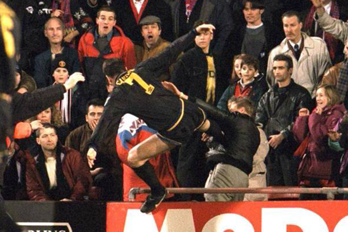El 25 de enero de 1995 fue expulsado en el estadio londinense de Crystal Palace y, mientras salía hacia los vestuarios al borde de la tribuna, un joven de 20 años, integrante de grupos de extrema derecha, le gritó: «Andate a tu país bastardo de mierda, volvete a Francia». Entonces Cantona saltó desde el campo para darle una patada que primero recorrió el mundo y luego la historia. Los primeros tiempos, sin embargo, no serían buenos: Manchester United lo sancionó por cuatro meses y le recortó el 50% de su sueldo el primer mes.