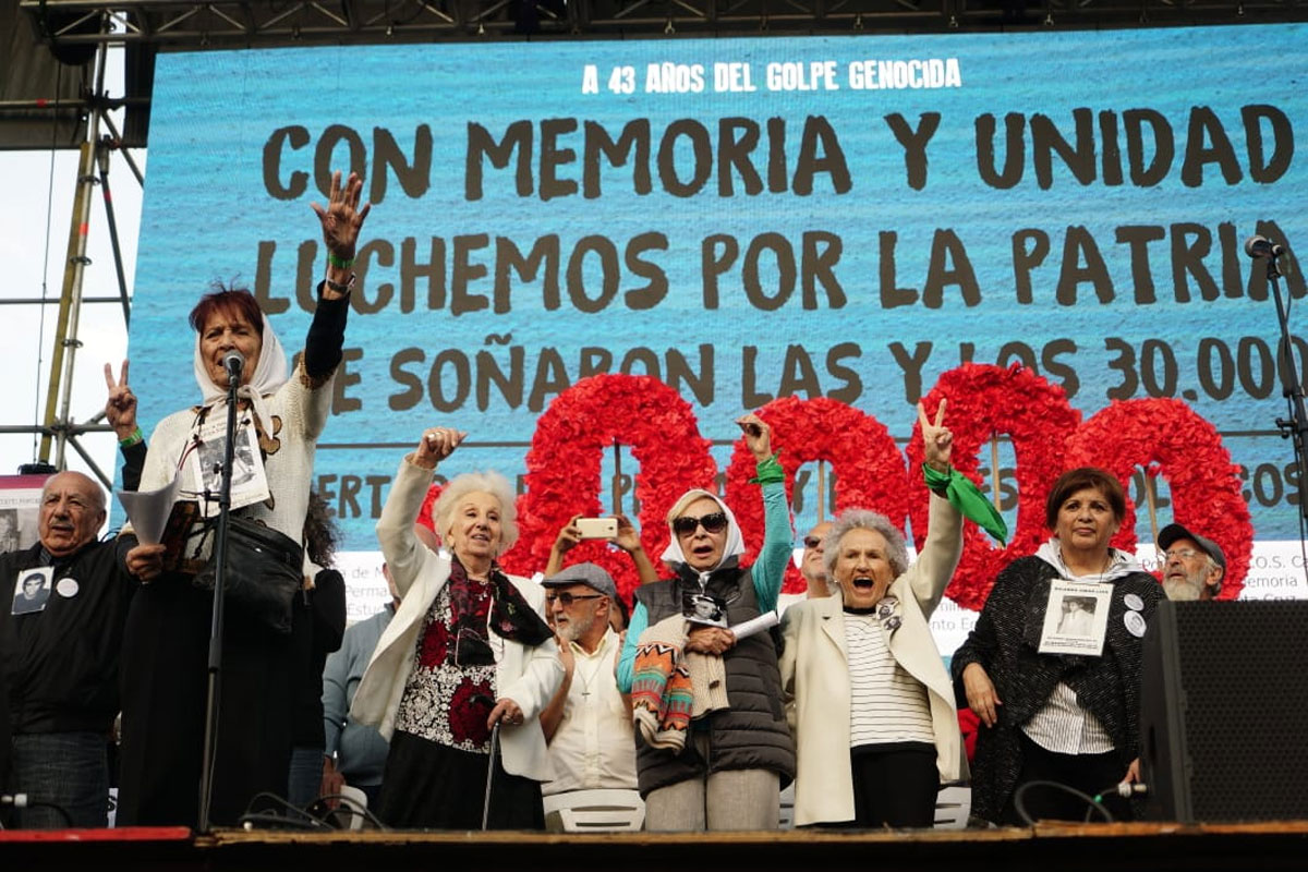 De ese genocidio surgió la fuerza que llevó a los Familiares, las Madres, las Abuelas, los Hijos e Hijas, los sobrevivientes y a todos los organismos de derechos humanos a no rendirse ante el miedo, a no olvidar, a seguir la búsqueda de la Verdad, de la Justicia y a luchar por la Memoria. La búsqueda de las nietas y nietos apropiados durante la última dictadura cívico-militar es cada vez más urgente.