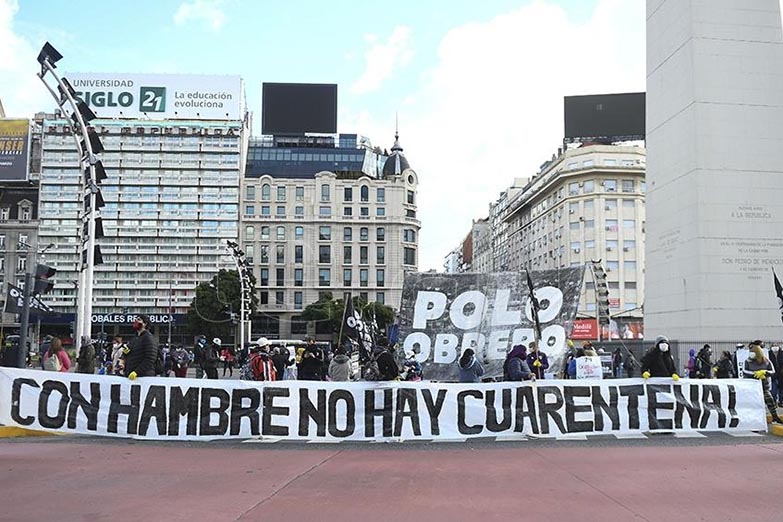 Durante los primeros días de abril, dirigentes y militantes de las organizaciones piqueteras de izquierda realizaron durante 48 horas una protesta con acampe sobre la avenida 9 de Julio, donde insistieron con sus reclamos.