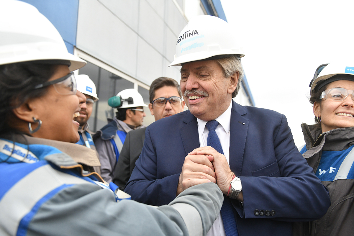 Fernández encabezó en la tarde del jueves en el bloque productivo Loma Campana de la empresa YPF, en el corazón de Vaca Muerta, un acto junto al gobernador de Neuquén, Omar Gutiérrez; el mandatario bonaerense, Axel Kicillof; el secretario de Energía, Darío Martínez; el presidente de YPF, Pablo González, y la directora ejecutiva de la Fundación YPF, Ofelia Cédola.