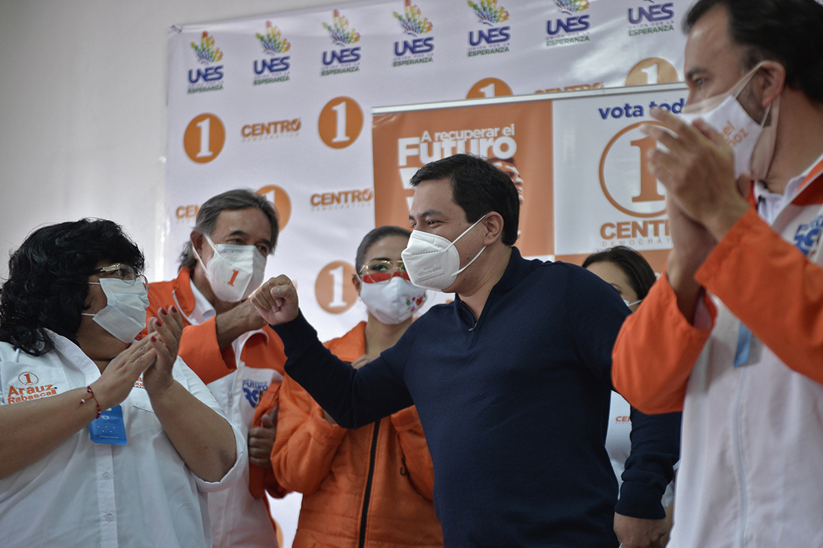 Ante la imposibilidad de presentarse como candidato, la figura de Correa es clave para ganar al electorado correísta. De hecho, días atrás, cuando se anunció formalmente el lanzamiento, postergado porque Arauz había adquirido coronavirus, se utilizó un recurso técnico que permitía ver en pantalla al expresidente junto con los dos candidatos, aunque estuvieran en Bélgica uno, y en Ecuador los otros.