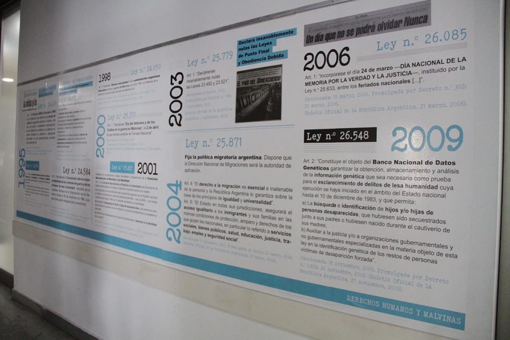 La exposición comienza en el entrepiso y llega hasta la planta baja de la Biblioteca. Su recorrido está pensado como una mirada integral sobre las últimas cuatro décadas de la historia de la Argentina a partir de que se recobró la democracia hasta hoy.