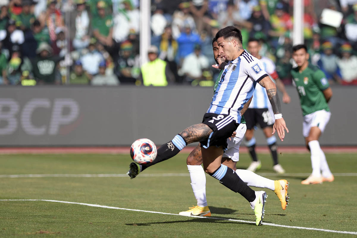 La selección argentina de fútbol le gana 2 a 0 a su par de Bolivia por la segunda fecha de las Eliminatorias sudamericanas para el Mundial 2026 de Estados Unidos, México y Canadá. En el segundo tiempo, arriba el conjunto nacional con goles de Enzo Fernández y Nicolás Tagliafico. El arbitraje es del uruguayo Esteban Ostojich y la noticia es que Lionel Messi no es parte del equipo titular ni del banco de suplentes.