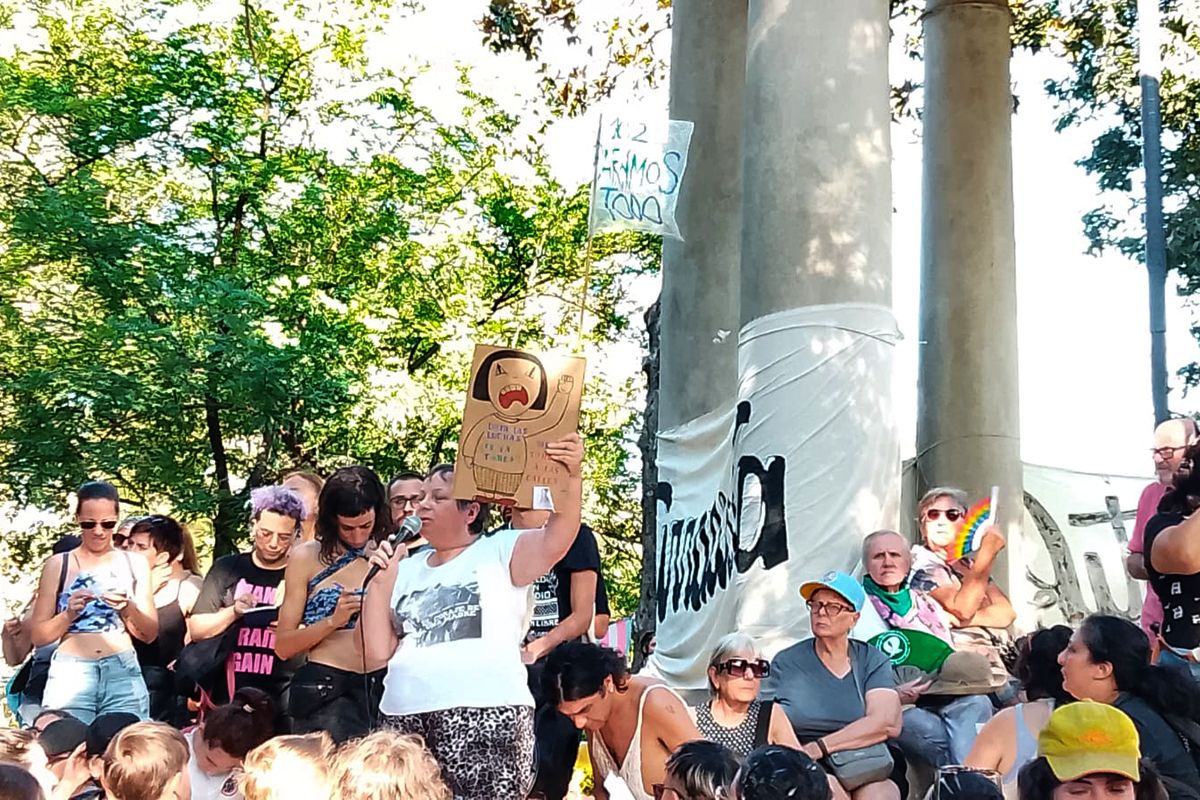 Bajo la consigna «¡Volvemos a marchar!», la reunión comenzó pasadas las 5 de la tarde bajo la sombra de los árboles del Parque Lezama. La lista de oradores se abrió luego de que lxs organizadorxs informaran los objetivos de esta convocatoria que propone construir una segunda marcha antifascista y antirracista desde las comunidades LGTBIQNB+, en articulación con todos los sectores de nuestra sociedad descartados y dañados por este gobierno neofascista, racista y neocolonial.