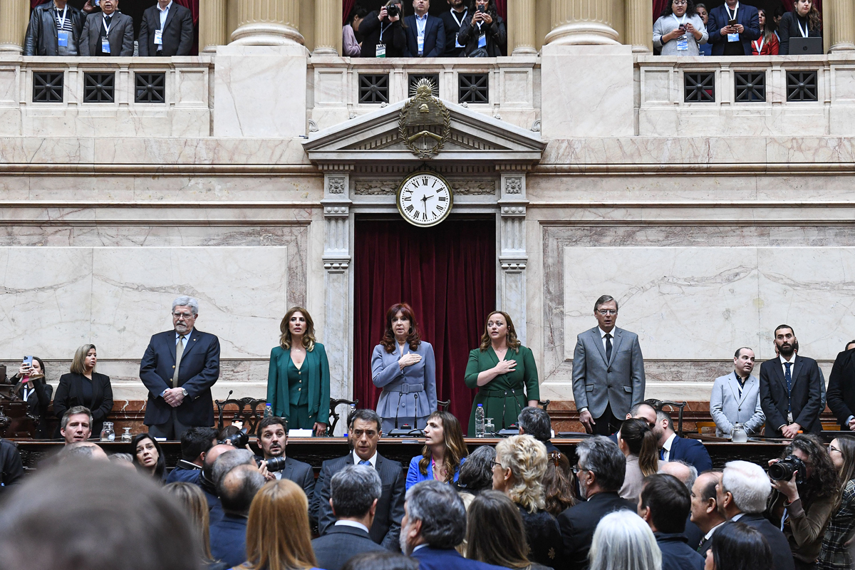 La Asamblea fue presidida por Fernández de Kirchner, junto a la titular de la Cámara baja, Cecilia Moreau, y la presidenta provisional del Senado, Claudia Ledesma Abdala de Zamora, y se realizó en el recinto de sesiones de la Cámara de Diputados.