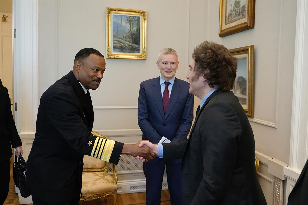 El almirante de la marina norteamericana llegó el lunes por la tarde a Buenos Aires y buscó acomodarse a la agenda argentina de una semana corta. El martes se reunió con el presidente, Javier Milei, y con el ministro de Defensa, Luis Petri. Después llegó el punto principal de su agenda. El miércoles viajó a Ushuaia y recorrió la base naval que la Armada tiene en el punto más austral del continente. A diferencia de la hiperexposición de su antecesora, Holsey fue más discreto. Quizás porque llegó en un momento donde deberá cerrar parte de las exploraciones que realizó Laura Richardson, la generala de cuatro estrellas del Ejército norteamericano que cerró el año pasado un cabildeo ecuménico en la Argentina. Se hizo conocida porque fue recibida el 25 de abril de 2022 por la entonces vicepresidenta Cristina Fernández de Kirchner. El 5 de abril del año pasado volvió al centro de la relación bilateral entre Washigton y Buenos Aires porque viajó a Ushuaia y Milei decidió repentinamente volar para recibirla. Lo hizo porque el gobernador fueguino, Gustavo Melella, se había negado en forma tajante a recibirla. En su lugar lo hizo el presidente con un viaje relámpago. Con Richardson al lado, Milei anunció la posible construcción de una base militar integrada entre Argentina y los Estados Unidos.