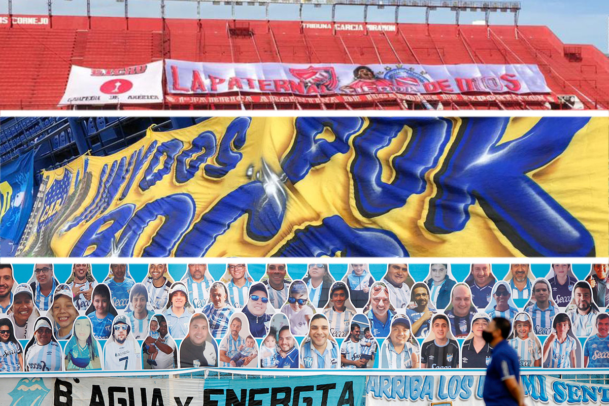 El operativo para colgar las banderas es más complejo en los partidos de Copa Libertadores o Sudamericana, porque el protocolo de Conmebol exige que el estadio quede sin accesos en las 48 horas previas al juego. Por la Liga Profesional de Fútbol, en general, se hace el mismo día. En algunos casos, se centraliza de manera institucional. En otros, es la subcomisión del hincha la que se encarga o los propios hinchas que se organizan mediante un grupo de WhatsApp. En Argentinos Juniors, por caso, se ocupa la Subcomisión del Hincha, que reúne todas las banderas bien temprano el día del partido y unas diez personas se ocupan de colgarlas, con previo listado aprobado por el ministerio de Seguridad de la Ciudad. El Quijote, Carranza, Bufano, El arqui presente, La parroquia, Añasco y Seguí y El Cantero son las consignas que se leen en La Paternal. “Es muy raro ir al estadio, colgar la bandera e irte a ver el partido por la tele. Para colmo tenés que volver cuando termina para descolgarlas. Pero te identifica. Sabés que está la bandera y te sentís presente, como si aportaras algo al espectáculo”, explica Federico, de la Subcomisión del Hincha de Argentinos, que explica que no hacen distinciones individuales de a quién pertenece cada bandera.
