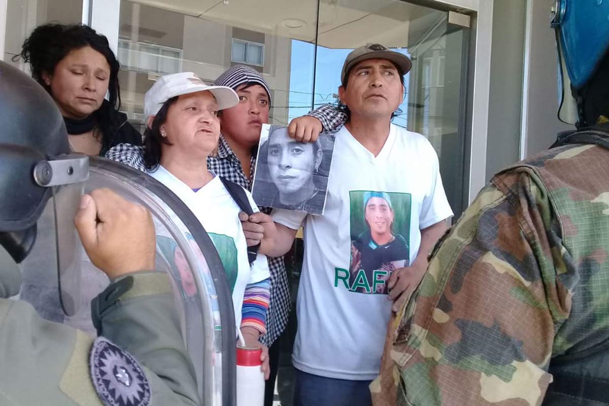 La manifestación se estaba realizando frente al Juzgado Federal de Bariloche encabezada por la familia de Rafael. Su tia, Maria entró a pedir que los atendieran pero no fue recibida. Ante esta negativa los manifestantes prendieron algunas gomas, y llegó de inmediato personal policial.