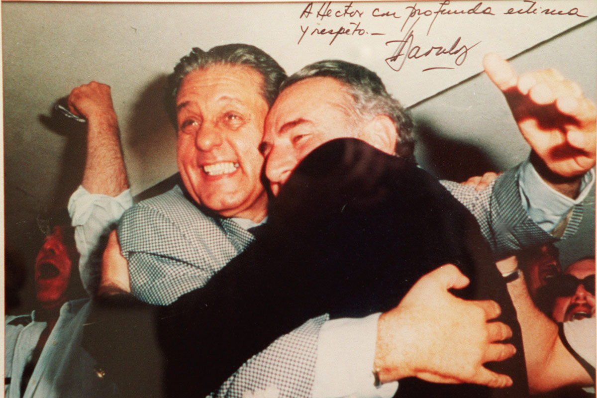 Ya estaban muy cerca de la fecha de la final contra River cuando Grondona confirmó que estaría presente para entregar la Copa en el Bosque. Como Favaloro no iba a poder estar presente, ya que debía viajar a un simposio científico en Estados Unidos, Cacho le hizo un pedido especial: casi como una cábala reeditaron en la oficina del negocio el encuentro entre ambos previo al ascenso del 84 con un testigo privilegiado: el diario El Día. “Delmar me llamó por teléfono para que fuera hasta su oficina particular. Cuando llegué estaba junto con Favaloro, que dejó un mensaje a todos los hinchas exhortándolos a disfrutar con tranquilidad del espectáculo y pidiéndoles que no ingresaran al campo de juego ante la posible consagración para que todos pudieran ver la vuelta olímpica”, cuenta el periodista Aníbal Guidi.