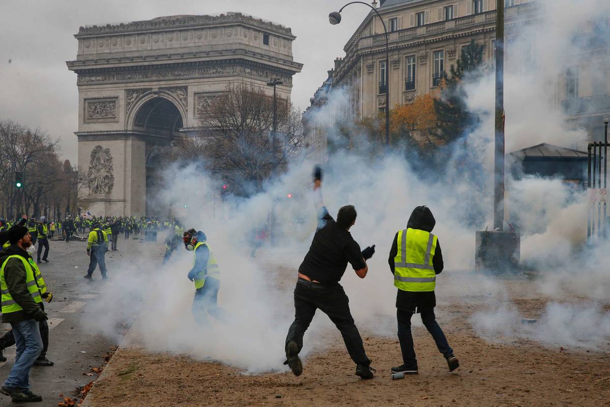 Tras casi una hora de intentar impedir que los manifestantes avanzaran hacia ese monumento, los policías lanzaron gases para dispersar a varias decenas de «chalecos amarillos» que trataban de penetrar por la calle Arsène Houssaye, cercana a los Campos Elíseos. Los manifestantes se disgregaron en los grandes boulevares y armaron barricadas ara detener a los vehículos blindados de las fuerzas gubernamentales. informó la agencia EFE. Por otra parte, esta mañana la policía realizó preventivas con varias detenciones, arguyendo que así evitarían que los enfrentamientos ingresasen en un crescendo, como hace una semana. Mientras el grito que predominaba en los manifestantes era «Macrón renunciá», el primer ministro se dirigía a los manifestantes para que se separen de los “casseurs” (vándalos).