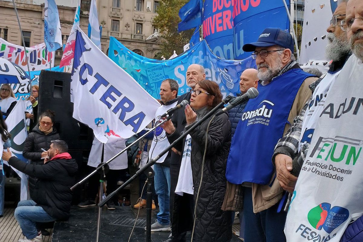“Las y los maestros de CABA sufrimos un 13% de caída en el salario real, tomando el tramo diciembre – abril. Las cuotas acumuladas dan cuenta de un 50,3%, mientras en el mismo tramo el IPC de CABA informó un 72,6% de inflación. Es decir, ya estaríamos perdiendo, por supuesto con niveles de salarios de pobreza”, destacó en diálogo con Tiempo Amanda Martin, secretaria adjunta de la asociación docente Ademys, que adhirió al paro y movilización de este jueves.