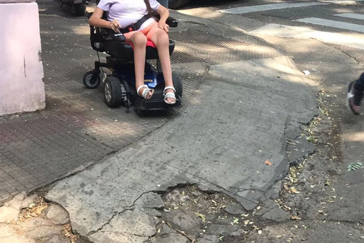 “Las veredas con baldosas flojas, lo que habla de la mala calidad de las obras que realizaron en los últimos años, y las tapas de servicios faltantes o que están rotas, dejan huecos que son muy peligrosos para el peatón. En relación a los vados de esquina, están rotos o tienen mucha inclinación, que también los hacen muy peligrosos para cruzar con sillas de ruedas. Se produce lo que nosotros llamamos una contrapendiente en la calle, producida por capas de asfalto que dificultan mucho los cruces”, enumera en diálogo con Tiempo María Rodríguez Romero, coordinadora de Políticas Publicas de Fundación Rumbos.