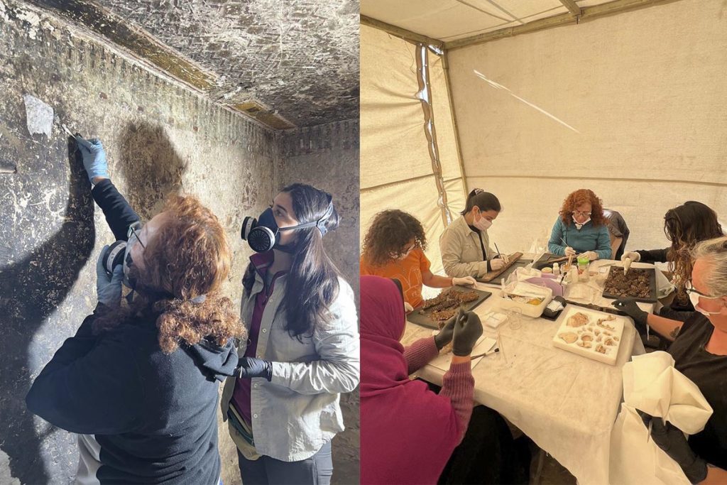 Una vez despejado el acceso original a la tumba, iniciaron tareas de limpieza en su interior. Por los resultados positivos obtenidos en campañas anteriores, utilizaron esponjas especiales para remover suciedad y polvo superficial en muros y techos. Gracias a la mejor circulación de aire generada por la apertura de la puerta, fue posible realizar un test con productos químicos para remover restos de hollín que se encuentran fuertemente adheridos sobre una de las paredes, con resultados positivos.
