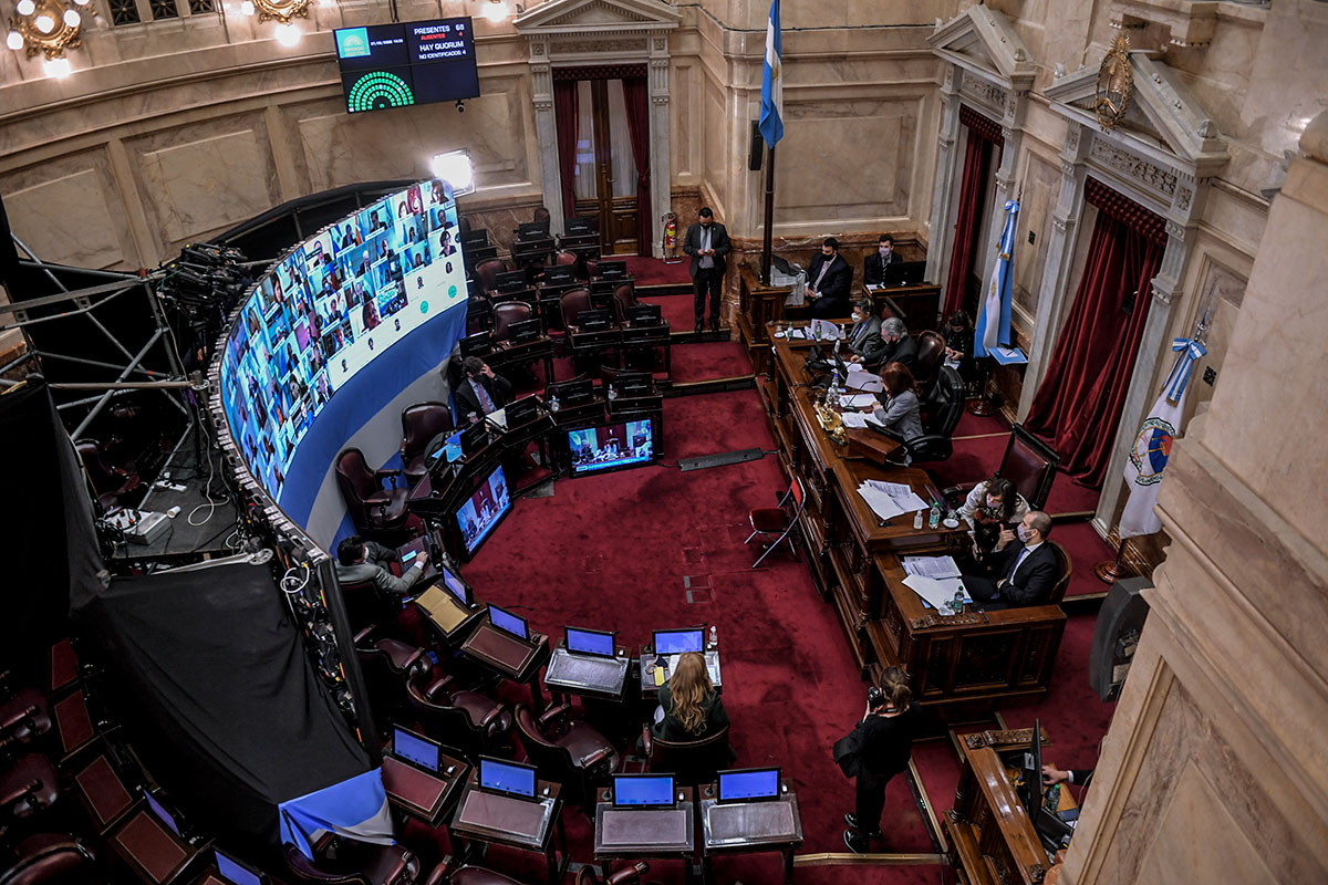 La sesión remota comenzó a las 14 horas. Transcurrió mientras un puñado de personas golpeaba sus cacerolas, tocaba bocina y cantaba el himno en las puertas del Congreso para protestar contra la iniciativa. Hubo 40 oradores en total. La titular del Senado, Cristina Fernández, estuvo en el recinto al comienzo del debate.