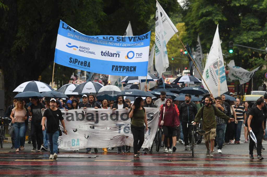 “Hace unos minutos recibimos el anuncio de una semana más de dispensa, algo que ya venimos rechazando desde el sindicato. Pedimos que se expidan sobre la causa por la cual están dispensándonos de realizar nuestras tareas, y queremos decirle al gobierno y al interventor que los trabajadores queremos que saquen las vallas y nos dejen volver a trabajar que es lo que sabemos hacer”, dijo durante el festival Carla Gaudensi, secretaria adjunta del Sindicato de Prensa Buenos Aires (Sipreba) y titular de la Federación Argentina de Trabajadores de Prensa (Fatpren).