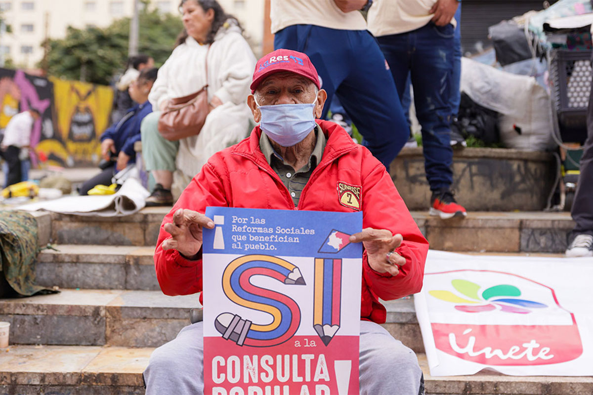 Esta vez, la coyuntura dispuso un argumento extra para que la marcha sea colorida, musical, entusiasta y multitudinaria: Petro definió la contradicción principal de la política colombiana en torno a una Consulta Popular que decida sobre la más importante de las reformas rechazadas por la oposición en el Parlamento, que se propone restituir derechos laborales vulnerados durante el gobierno del ultraderechista Álvaro Uribe en 2002. Eligió hacerlo, además, presentando la consulta en el Día Internacional de los Trabajadores, con imponentes movilizaciones en todo el país en su respaldo y con un fuerte discurso que combinó el tono pedagógico con apelaciones a la lucha.