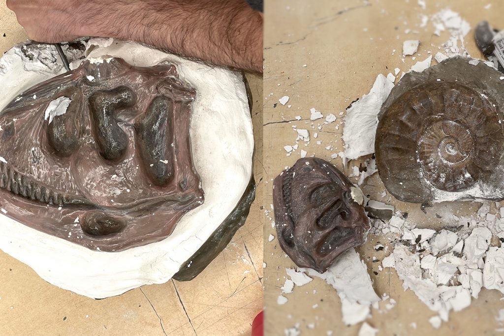 Incluso encontraron ollas y pavas que en su interior guardaban más restos envueltos en trapos. Y llegaron a cubrir fósiles con yeso y pintura para hacerlos pasar como adornos. La «mudanza» también transportaba minerales que sí estaban declarados correctamente. Aunque entre ellos, metieron el esqueleto completo de un Hadrosaurio. «También había declarado algunos bultos como ‘adorno de dino’ cuando en realidad eran huesos de dinosaurio reales revestidos en yeso», acotaron en el organismo estatal.