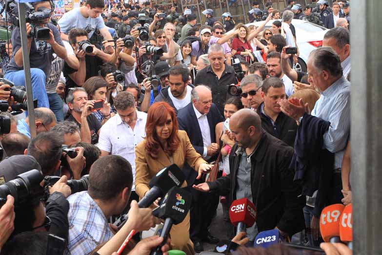 Afuera, unas 2000 personas se movilizaron para apoyar a la ex mandataria, quien dará una conferencia de prensa al salir de los tribunales federales. Militantes, legisladores, dirigentes y ex funcionarios se acercarán a los tribunales de Retiro, completamente vallados, aunque se le impide hablarles a sus seguidores como parte del operativo de seguridad.