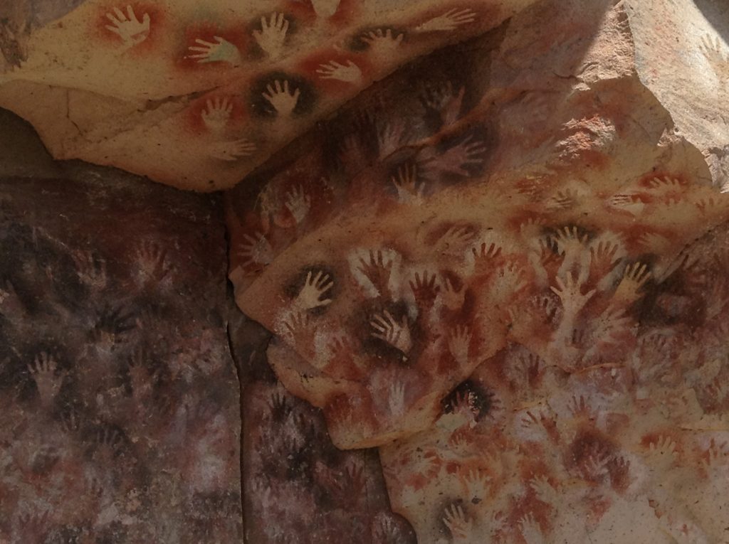 Son manos. Cientos de manos que están realizadas hace más de nueve mil años mediante el soplido de pintura a través de un hueso hueco que, suponen los expertos, funcionó como un pequeño soplete. Seguramente, el hombre de la prehistoria jamás pensó en el sinfín de comentarios que se desprenden de sus pinturas.