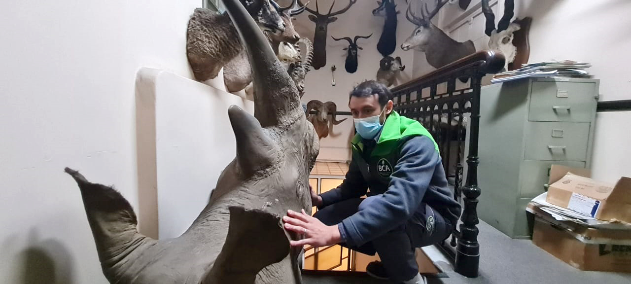 En el operativo constataron la existencia de un cuarto cerrado por una puerta de vidrio. Allí se encontraron las piezas: restos conservados de elefante, rinoceronte, león, leopardo, búfalo caffer, facocero, antílopes, sitatunga, kudú menor, gran kudú, órix, eland, waterbuck, kobus leche e impala, tar del Himalaya, ciervo del Padre David, carnero Marco Polo, ciervo axis, búfalo de la India, ibex, ciervo dama, ciervo colorado, rebeco, alce, caribú, carnero de Dall, puma, ciervo de los pantanos y venado de las pampas.