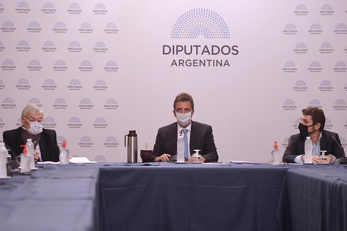 «Bajo la excepción que representa la pandemia y juntar casi 900 personas -entre diputados y personal de la Cámara- pudimos avanzar en la idea de diseñar un trabajo para que estén presentes autoridades y presidentes de bloque adentro del recinto y el resto de los diputados por fuera de manera virtual para construir un proceso que permita funcionar como parlamento de manera remota», dijo al finalizar el encuentro Massa.