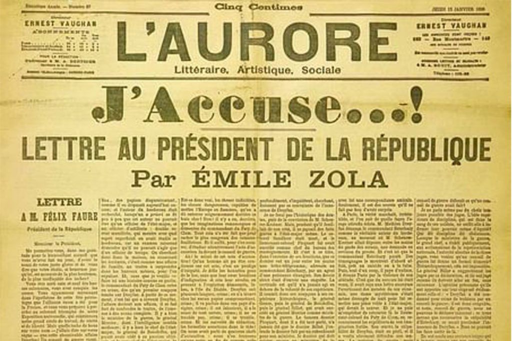 En aquellos años el mundo ignoró lo que muy generosamente podría calificarse como las “injusticias” de “L’Affaire Dreyfus”. La persistencia del hermano de Alfred para que el caso no pasara al olvido, y la toma de conciencia de algunos intelectuales que enfrentaron al Segundo Imperio Francés y a la aristocracia presentes en la Iglesia y en los estamentos militares, tuvieron resultados. El 13 de enero de 1898 Francia conoció lo que sería, hasta estos tiempos, uno de los más valientes alegatos de uno de sus grandes escritores, Émile Zola, en defensa de la verdad y la justicia. Ese día, L’Aurore, el diario dirigido por el futuro primer ministro Georges Clemenceau, ocupó toda su primera página con una carta al presidente M. Felix Faure a la que Zola tituló “J’Accuse” («Yo acuso»). El régimen imperial y sus fuerzas armadas no tuvieron otra opción que la de reabrir la causa. Dreyfus terminó absuelto.