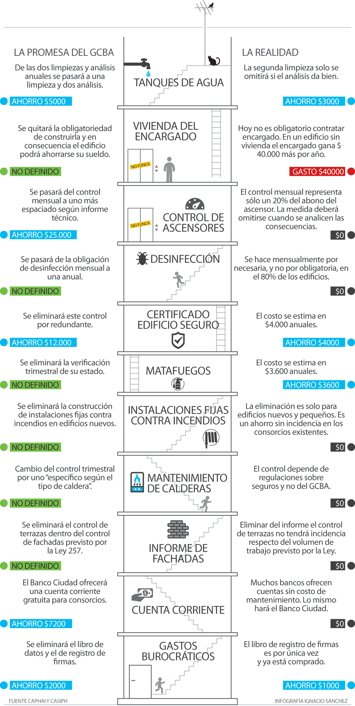 Las primeras dos medidas entraron en vigencia en marzo, a partir de la derogación del libro de datos periódicos y del Certificado de Edificio Seguro. Este último implicaba “un gasto que podía rondar entre los 12 y 20 mil pesos al año. Era un certificado que avalaba otros certificados. Había una redundancia de trámites”, puntualizaron a este medio fuentes oficiales. Las distintas cámaras que nuclean a los administradores no son tan optimistas. Para el sector, el valor del Certificado de Edificio Seguro no representaría más de 4000 pesos.