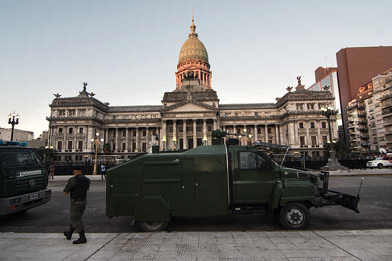 Con el Congreso blindado, vallas, fuerzas de seguridad y carros hidrantes rodean el edificio y la zona, la Cámara de Diputados trata este jueves uno de los proyectos que más rechazo y tensión social genera: el recorte de los aumentos jubilatorios y asignaciones sociales.