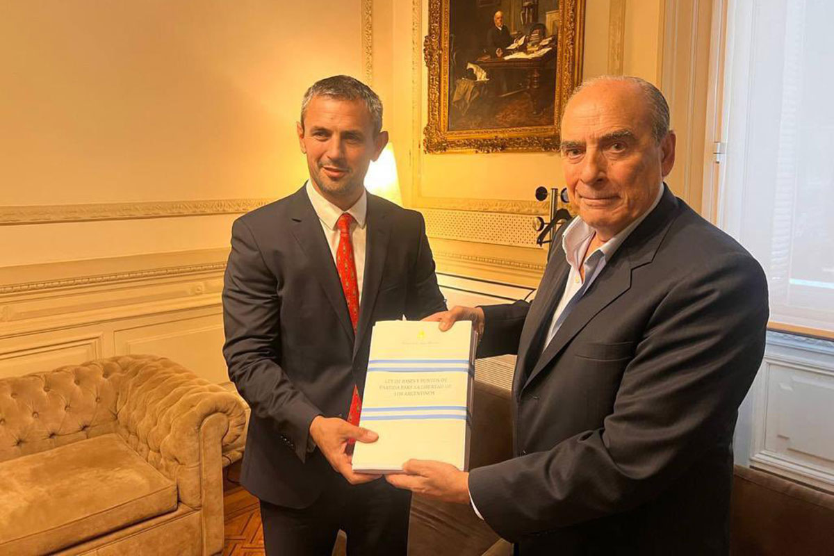 Por momentos se avizoraba un escenario de tres dictámenes y en otros de dos. Luego de un lunes marcado por la iniciativa de la Casa Rosada, que concluyó con una reunión hasta tarde entre funcionarios y los gobernadores de JxC, este martes se registraron dos momentos para seguir hilando más fino. Por la mañana hubo un encuentro entre el ministro del Interior, Guillermo Francos, y el consultor Santiago Caputo, con las autoridades del bloque HCF que preside Miguel Pichetto. Los representantes de Milei se llevaron una serie de contrapropuestas y alternativas. El planteo del espacio apuntó a dos posibilidades: si la Rosada accede a las propuestas el bloque podría firmar el dictamen de mayoría y si no habrá un dictamen alternativo que podría sumar a una parte del radicalismo. En esos reclamos también estaba el reparo compartido con los mandatarios provinciales: negarse a aumentar las retenciones al maíz,al trigo, a la carne y a los subproductos de soja.