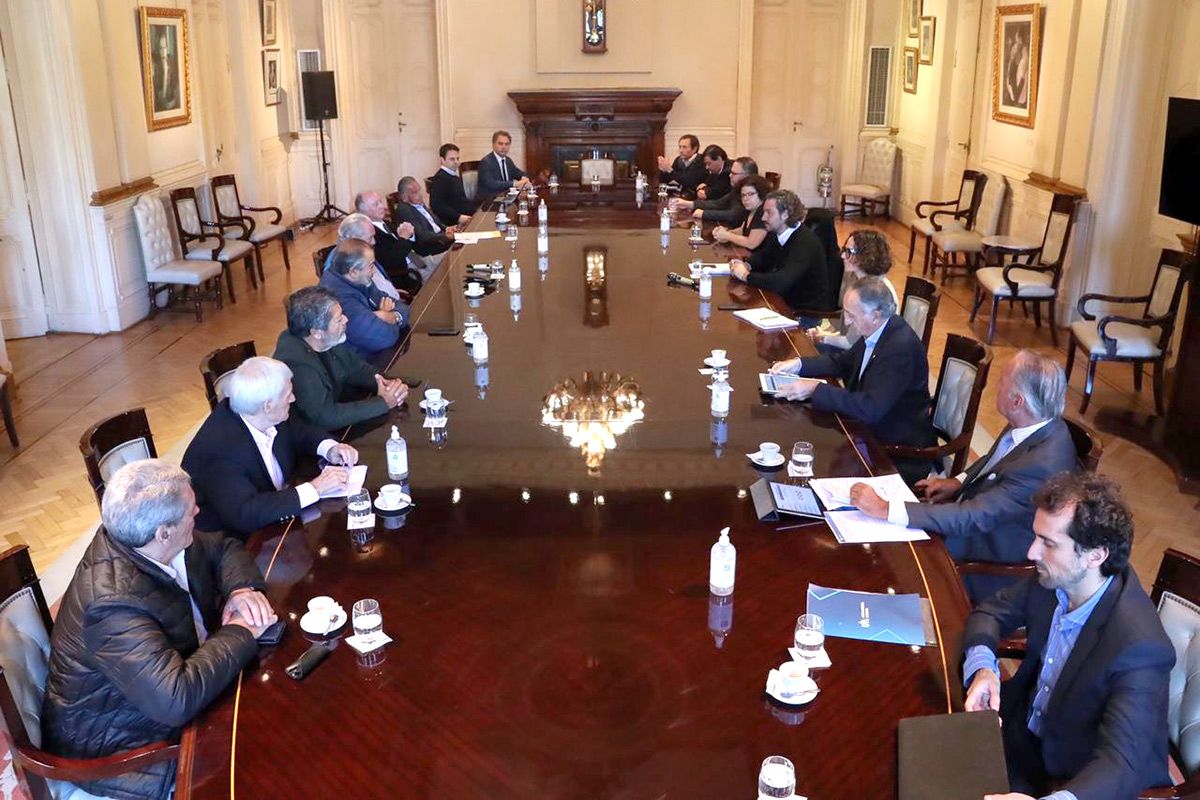 La reunión estuvo encabezada por el jefe de Gabinete, Santiago Cafiero, y su vicejefa, Cecilia Todesca. Por el lado gubernamental estuvieron también los ministros de Desarrollo Productivo, Matías Kulfas; de Trabajo, Claudio Moroni; de Transporte, Mario Meoni; y de Salud, Ginés González García.