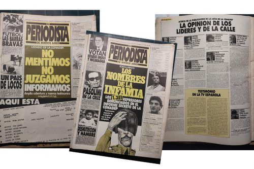 En el número ocho la revista incluyó un suplemento con una exclusiva que causó conmoción. Era una lista, originada en la recientemente constituida Comisión Nacional de Desaparición de Personas (CONADEP) que contenía los nombres de 1351 personas mencionadas como represores por quienes se presentaron a atestiguar en el organismo. La presencia en el memorial de quien en dictadura ocupara la nunciatura apostólica, el arzobispo Pío Laghi, despertó una furibunda reacción de la Iglesia. El gobierno se sintió profundamente afectado con el argumento de la fragilidad de la democracia. Incluso hubo sectores que consideraron que la publicación constituía “una maniobra de desestabilización”. En el número nueve la revista respaldó lo dicho: “No mentimos, no juzgamos: informamos”. Una respuesta inicial –las décadas pasan y algunas costumbres malas no cambian– fue el temporal retiro de la pauta publicitaria oficial.