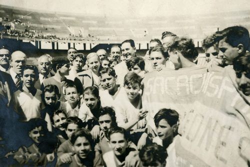Perón consultó sobre dónde entrenaban. Vázquez le contó que lo hacían en la calle. Ahí mismo el Presidente le dio aviso al edecán naval para que tomara nota de los datos de Vázquez y se pusiera en contacto para resolver un problema: los chicos no podían seguir entrenando en la calle, el gobierno se encargaría de construirles una cancha. Los jugadores de Sacachispas salieron con tal motivación que vencieron a Sportman por 4 a 0, consagrándose campeón de su seccional. Perón, quien vivió el encuentro desde el palco oficial, después del triunfo y junto a Evita formó parte de la celebración en el campo de juego con los chicos que desplegaron la bandera con los colores lila y blanco.