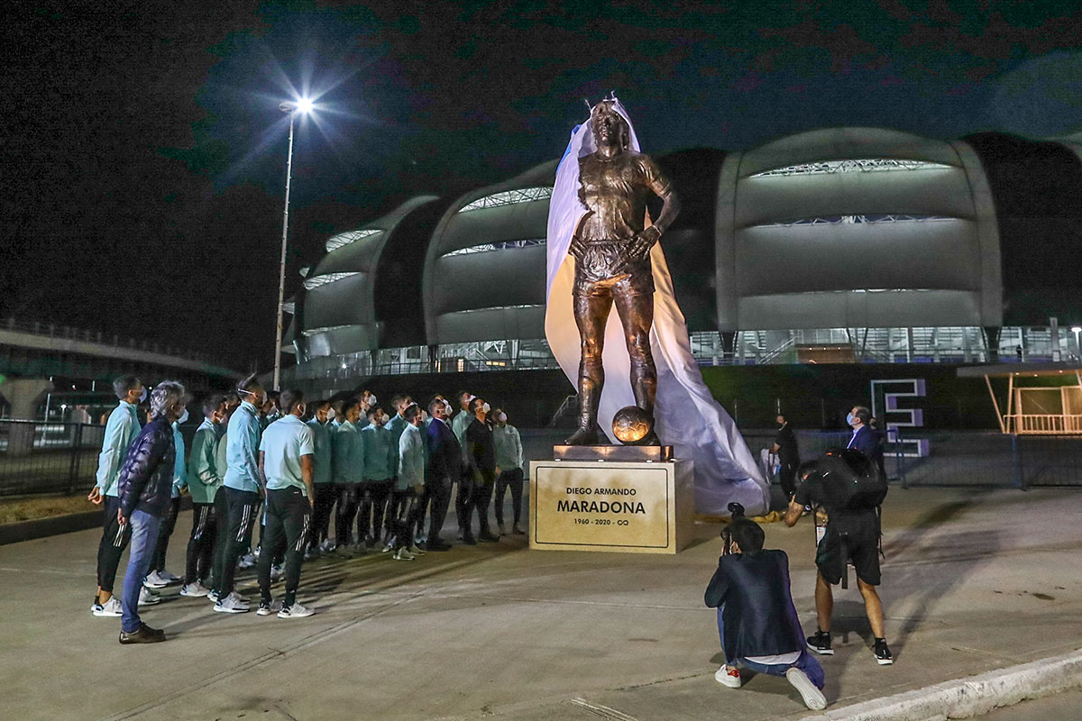 En la previa del partido ante Chile por las Eliminatorias Sudamericanas para el Mundial de Qatar 2022, Messi junto al resto del plantel y el presidente de AFA, Claudio Tapia, participaron del acto donde se descubrió la estatua en homenaje a Maradona. Los futbolistas se bajaron del micro que los trasladaba para el estadio y presenciaron el acto, breve pero emotivo. También estuvo presente el gobernador de Santiago del Estero, Gerardo Zamora, quien recibió de regalo por parte de AFA una camiseta del seleccionado con el número 10 y su nombre en la espalda. En los últimos años, Santiago se volvió una sede habitual para los partidos importantes del fútbol argentino, producto del buen vínculo entre Pablo Toviggino, Secretario Ejecutivo de AFA, y Zamora.
