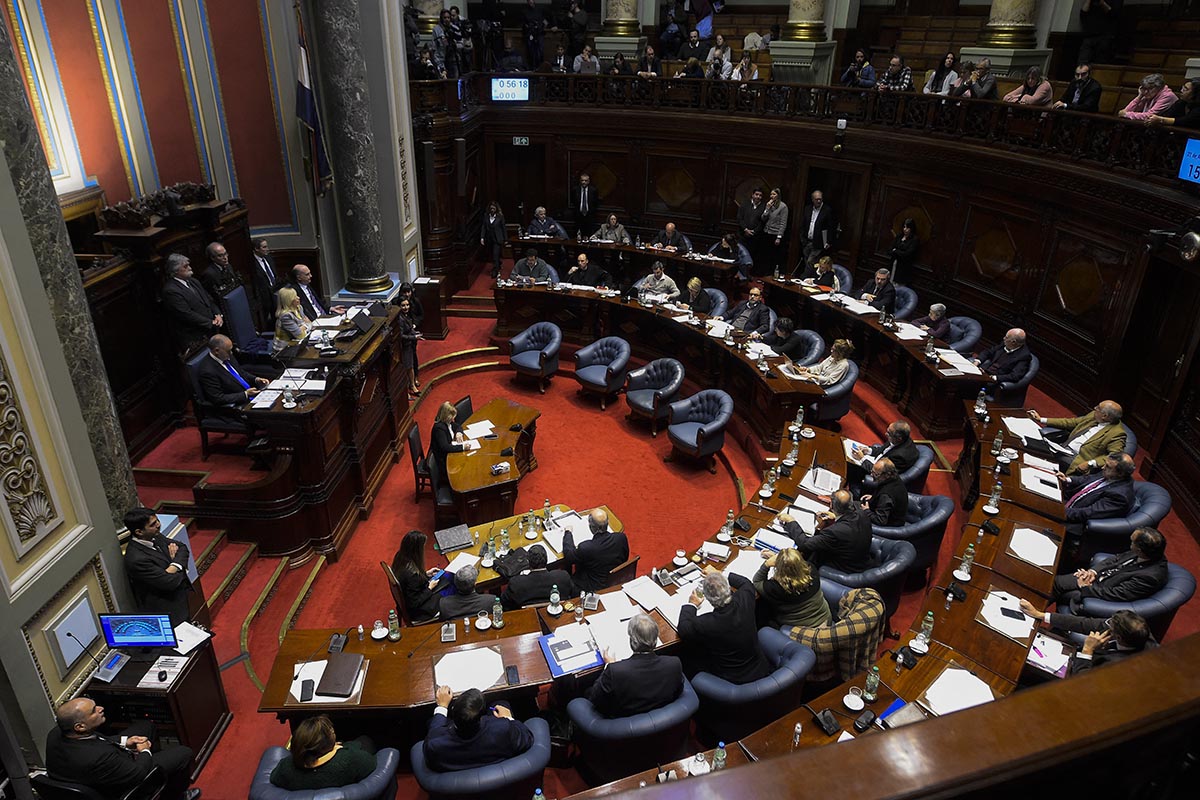 Horas antes del inicio de la votación del proyecto de ley de reforma jubilatoria en el Senado, el PIT-CNT -la central sindical única del Uruguay- y otras organizaciones se movilizaron frente al Palacio Legislativo en rechazo a la aprobación de la reforma. Por una cuestión de aforo, sólo un grupo de manifestantes ingresó al edificio para seguir la discusión desde las barras, que tras aplausos de aprobación a la oratoria de un senador frenteamplista fueron desalojadas por orden de la vicepresidenta Beatriz Argimón.