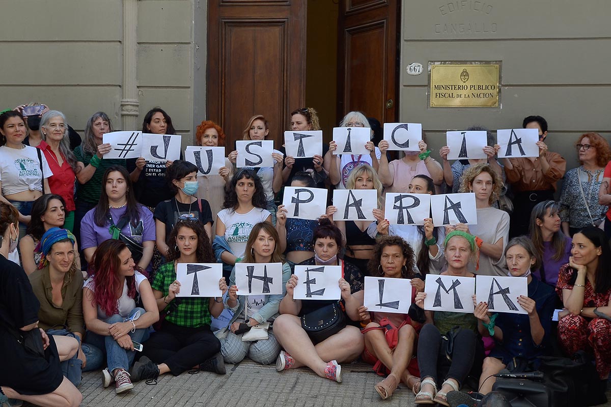 “Por Thelma y por todas” fue el lema con el cual se unieron el martes al mediodía frente a la Unidad Fiscal Especializada en Violencia contra las Mujeres (UFEM) actrices, militantes políticas y referentes de organizaciones sociales que se acercaron hasta el lugar para respaldar a Fardin, quien declaró durante cuatro horas.