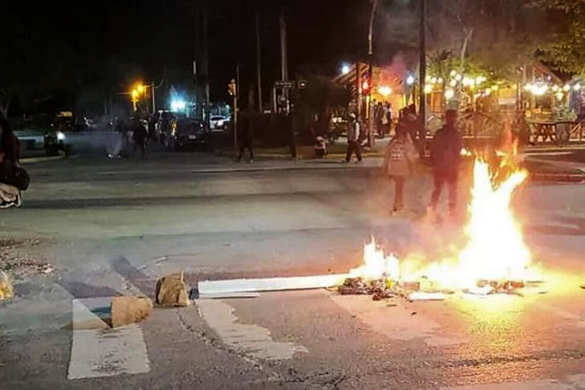 La protesta por el crimen de Elías bloqueaba con una pequeña fogata la avenida principal, San Martín, en su cruce con la Ruta 40 (que divide al pueblo en dos partes). Luego, atacaron y dañaron un local de Lotería propiedad del intendente, hasta que “los gauchos”, como los definieron, los corrieron a palazos incluso hasta el interior del Hospital de El Bolsón, donde amenazaron a la madre y familiares de Gonzalo Cabrera, quien justo en ese momento se encontraba en el quirófano peleando por su vida.