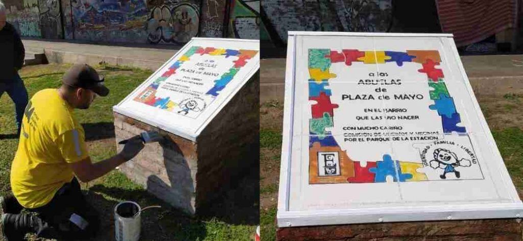 “En el Parque también nos ha pasado con un mural muy bonito, que habían realizado los vecinos y vecinas. Este mural tenía pañuelos dibujados. Pero lamentablemente esto viene pasando mucho en el barrio. Hace poquito también en San Cristóbal, en el Banco Nación, en Entre Ríos y San Juan; se vandalizó una cerámica en homenaje a Rodolfo Walsh. Todo fue en estos últimos meses”, explica Fornassero y agrega: “No son cosas nuevas para el barrio se está incrementando la frecuencia y eso nos preocupa mucho”.