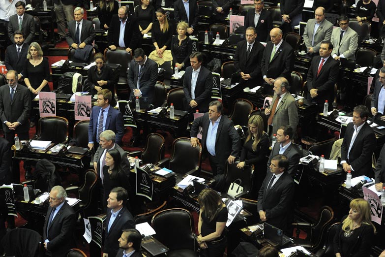 Igual festejaron a los gritos en el salón Juan Domingo Perón o Pasos Perdidos como se conoce comúnmente. Adentro, en el recinto, el debate de los artículos continuaba.